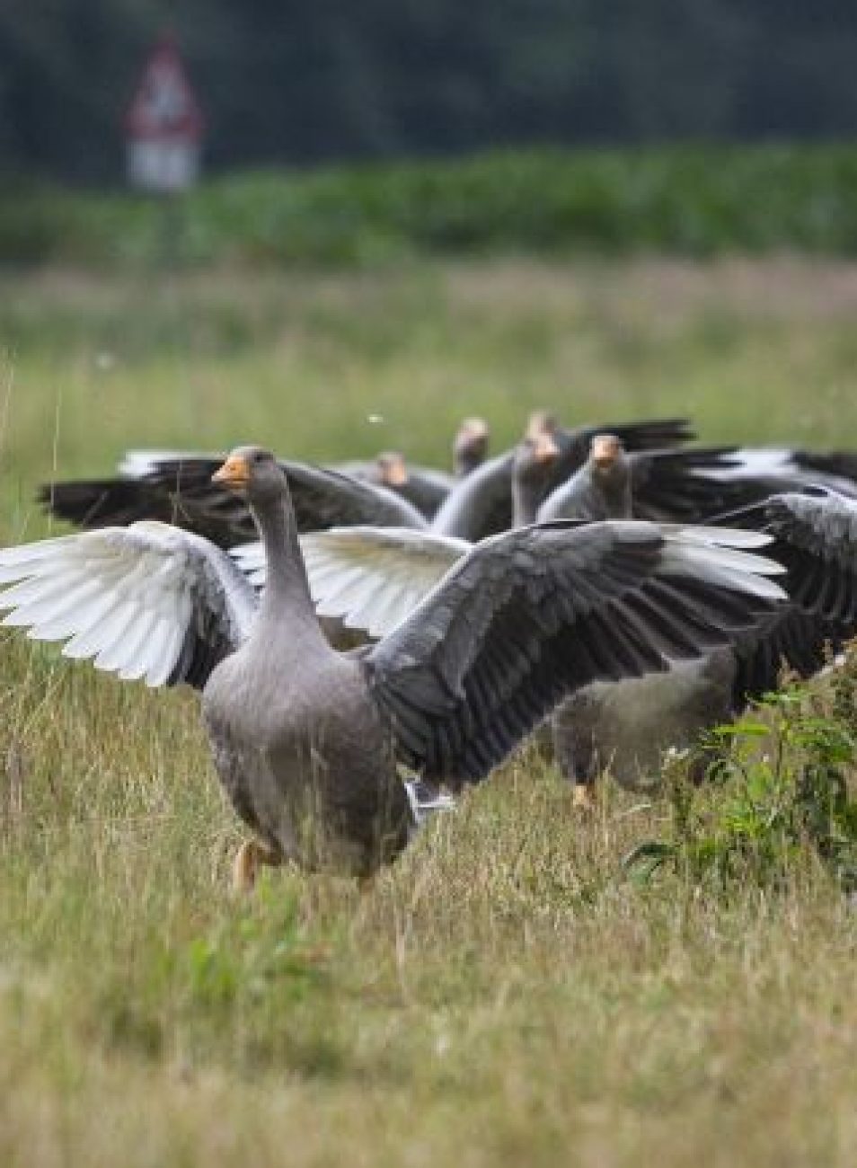 Eigentlich war geplant, die beiden Junggänse, die wir großgezogen haben, zu Martini zu schlachten. Aber wir haben festgestellt, dass sie noch ein bisschen leicht sind. Darum gibt es eine Gnadenfrist, voraussichtlich bis im Januar. Und bis dahin werden sie gemästet – mit Hafer. Für überzeugte Veganer wäre übrigens dieser Umstand ein schlagendes Argument, warum Fleischessen im Grunde Verschwendung ist. Denn rein kalorienmäßig betrachtet würde uns ein Sack Hafer natürlich den ganzen Winter versorgen – zwei Gänse dagegen geben zweimal ein Festessen mit Freunden. Im Sommer allerdings sieht es anders aus. Sobald die Gössel aus dem „Kleinkindstadium“ heraus sind, ernähren sie sich nur von Gras – und das wiederum könnten wir nicht verzehren. Also wie immer: Alles ziemlich komplex. Eines jedoch ist sicher: Willi und Wilfriede, die beiden Elterntiere, die mittlerweile sieben Jahre alt sind, werden niemals zu Braten, dafür sind sie uns zu sehr ans Herz gewachsen. Vor allem Willi mit seinem Tick: Sobald er die grüne Schaufel, mit der wir sein Futter aus einer Plastiktonne herausnehmen, sieht, wird der sonst recht friedliche Zeitgenosse richtig aggressiv. Vor Wut ist er auch schon mal über den Zaun gesprungen, um sich in sie zu verbeißen. Wer weiß, welches Trauma hinter diesen Anfällen steckt!